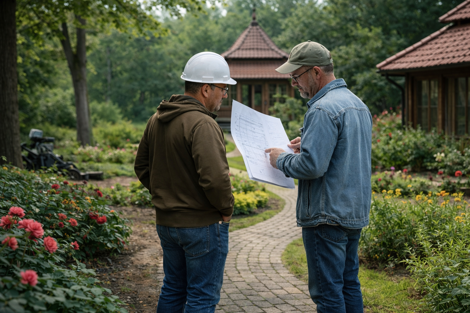 Эскизный проект — это общая концепция участка с планировкой и фото‑примерами. Мы соединяем ваши идеи с нашим опытом и дорабатываем вариант до тех пор, пока вы не скажете: «Да, это именно то, что я хотел»