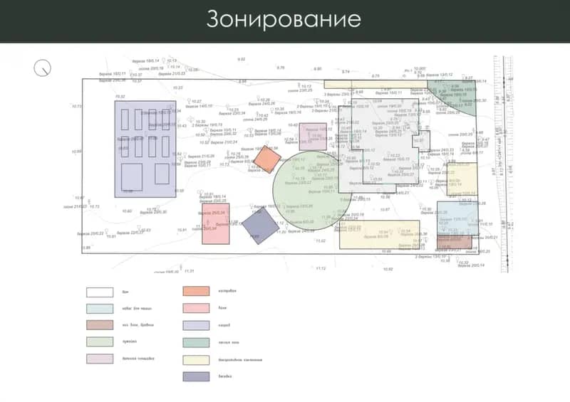 - продумать зоны огорода, детской площадки, зону кострища, лужайку