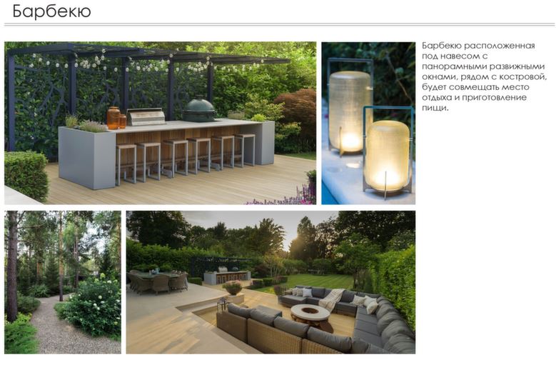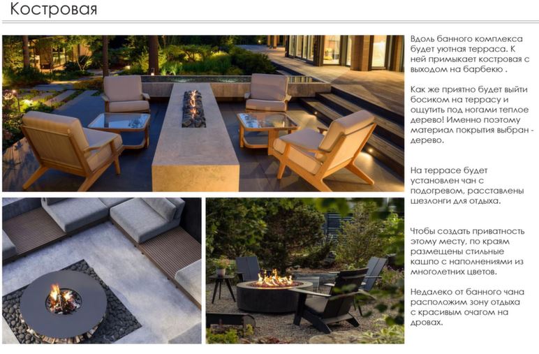 - разместить и продумать зону кострища с выходом на барбекю