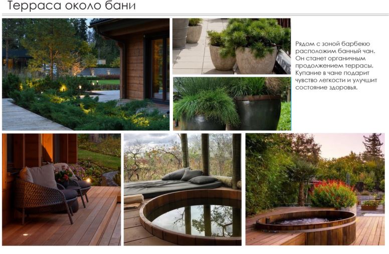 - расположить банный чан рядом с зоной барбекю