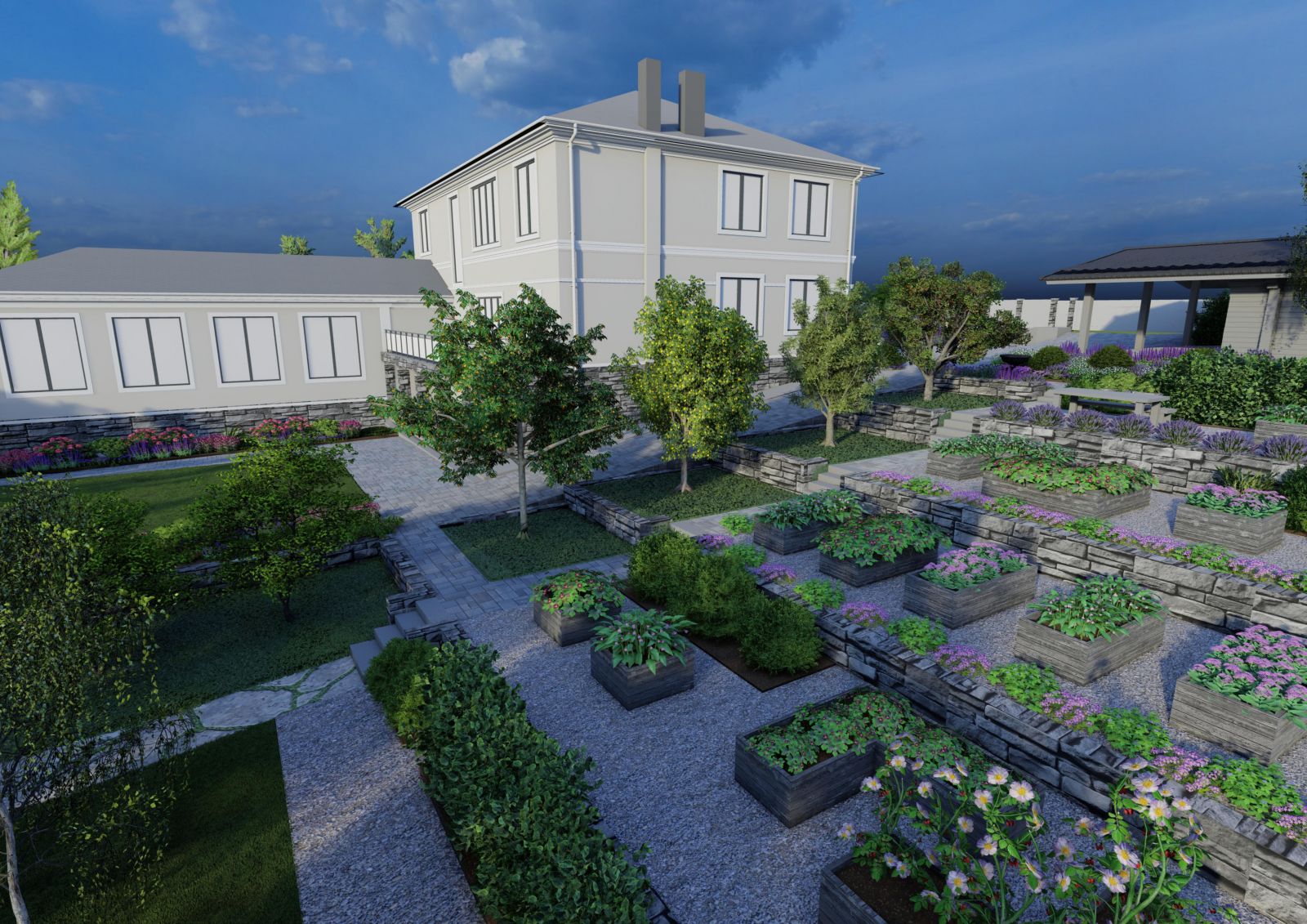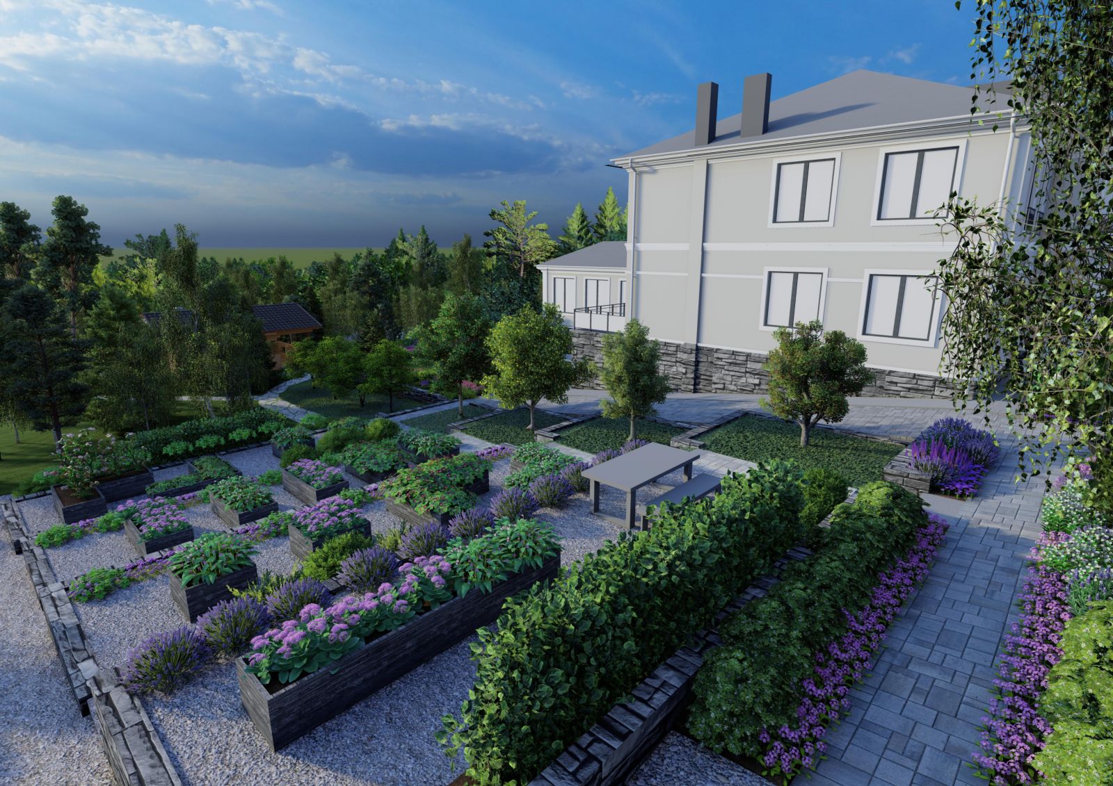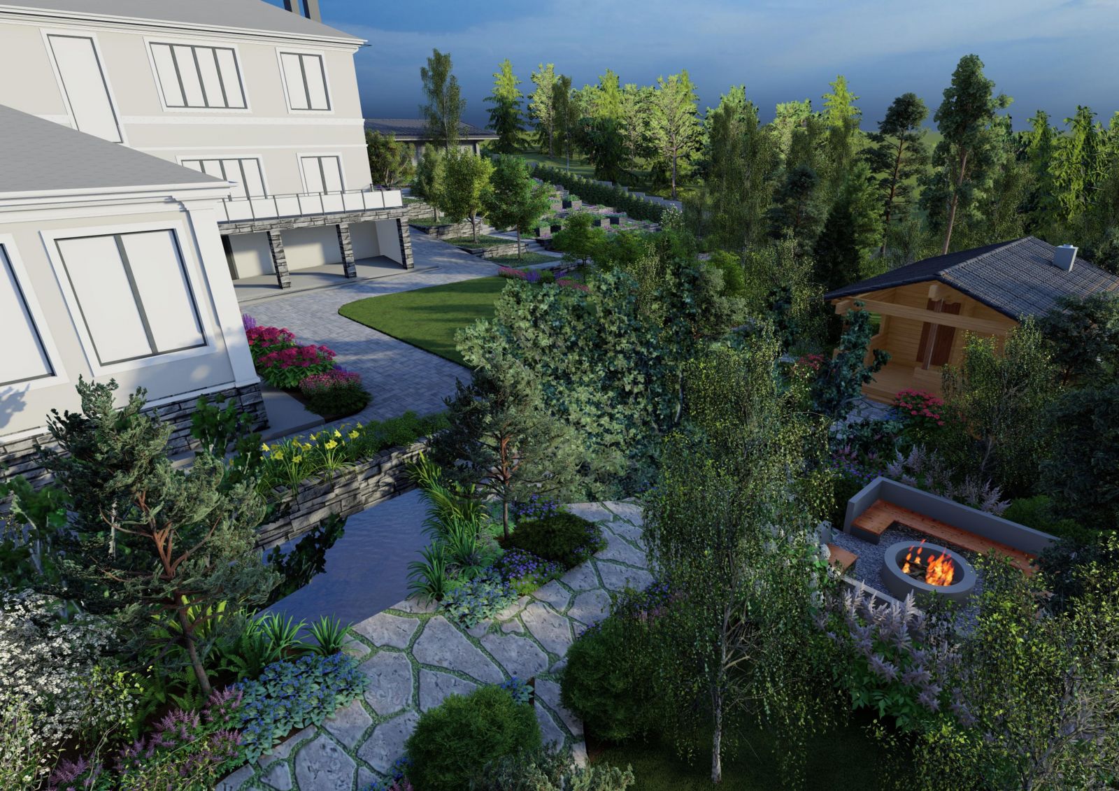 ✅ Полный цикл работ: от мастер‑плана и 3D‑визуализации до реализации, автополива и освещения