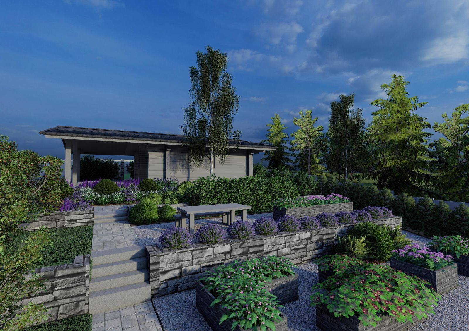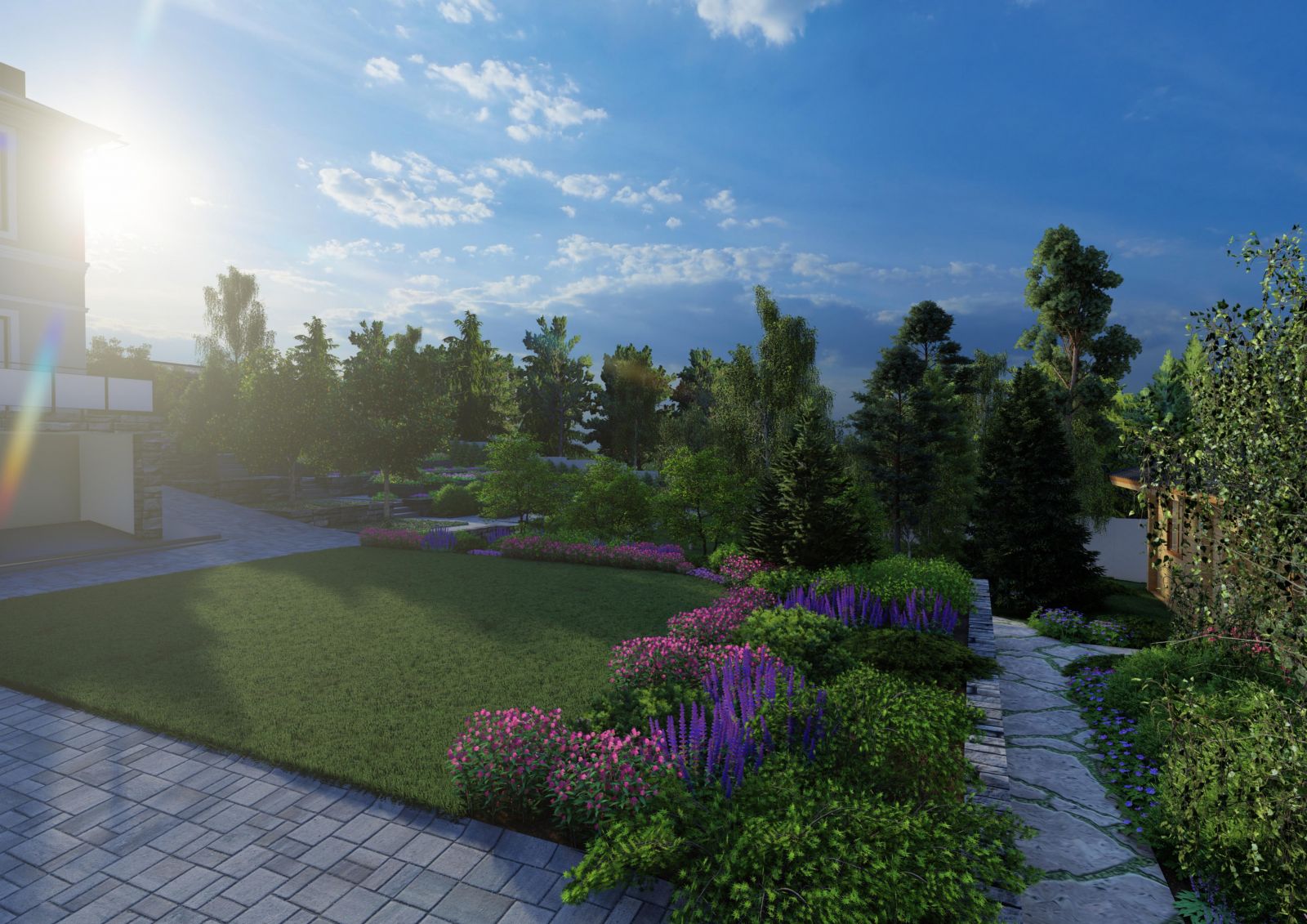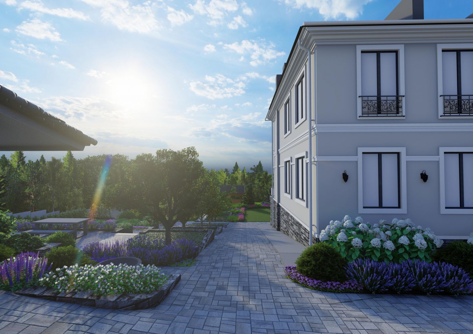 ✅ Полный цикл работ: от мастер‑плана и 3D‑визуализации до реализации, автополива и освещения
