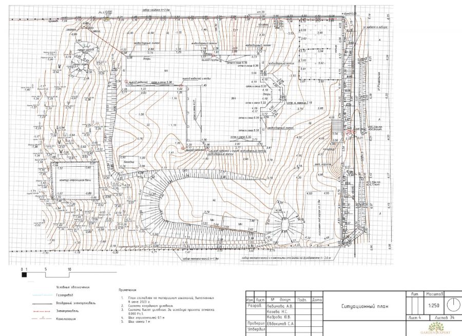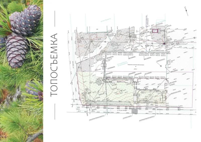 Геодезисты выезжают на участок, проводят замеры и составляют карту с объектами, перепадами высот и точными размерами. Эта карта нужна для эскизов и дальнейшей детальной сметы проекта